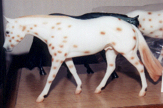 OK, OK....actually the Gang at Breyer was a bit more reasonable about those "stealth SRs" in 1999. This is actually the 1999 Breyerfest Judges' model, named "Zeppelin." He's a leopard appaloosa Zippo Pine Bar.